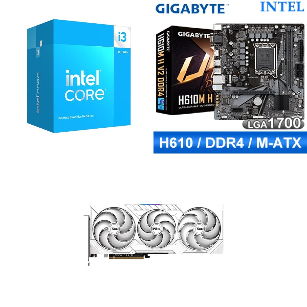 ☆裝機配★ i3-14100F+技嘉 H610M H V2 D4 MATX主機板+藍寶石 PURE 極地 RX 9070 GRE GAMING OC 12GB 顯示卡