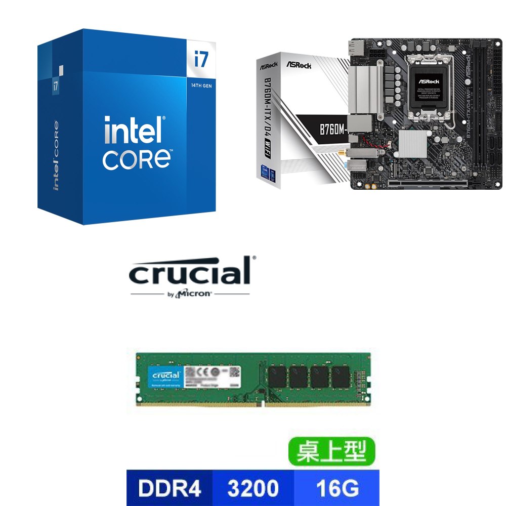 ☆裝機配★ i7-14700F+華擎 B760M-ITX/D4 WiFi ITX主機板+美光 DDR4-3200 16G 記憶體