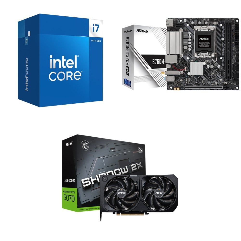 ☆裝機配★ i7-14700+華擎 B760M-ITX/D4 WiFi ITX主機板+微星 RTX 5070 12G SHADOW 2X OC 顯示卡