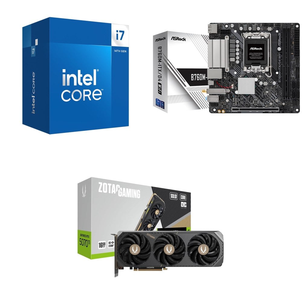☆裝機配★ i7-14700F+華擎 B760M-ITX/D4 WiFi ITX主機板+索泰 RTX 5070 TI SOLID CORE OC 16G 顯示卡