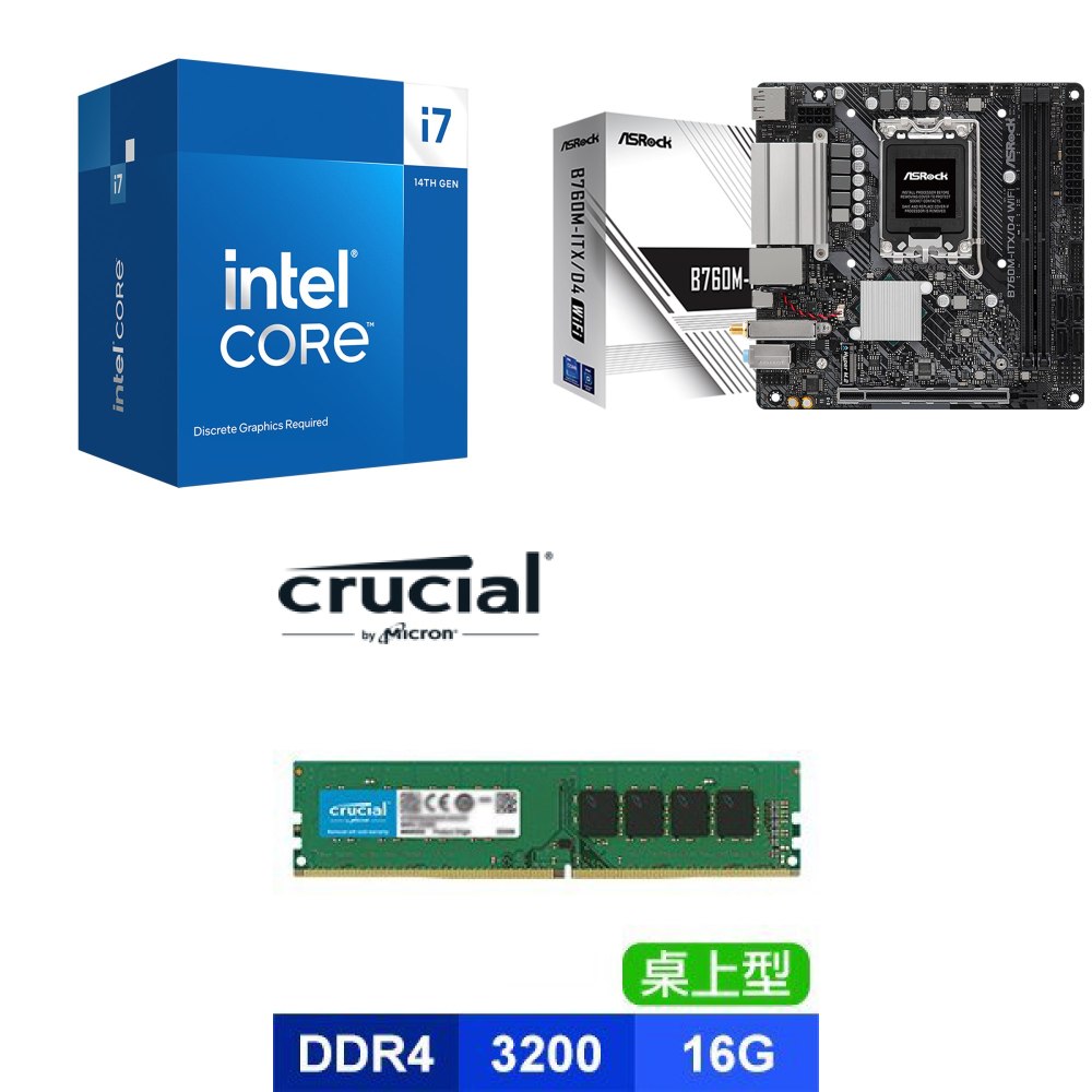 ☆裝機配★ i7-14700F+華擎 B760M-ITX/D4 WiFi ITX主機板+美光 DDR4-3200 16G 記憶體