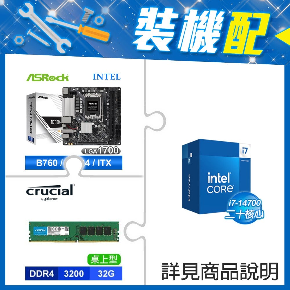 ☆裝機配★ i7-14700F+華擎 B760M-ITX/D4 WiFi ITX主機板+美光 DDR4-3200 32G 記憶體