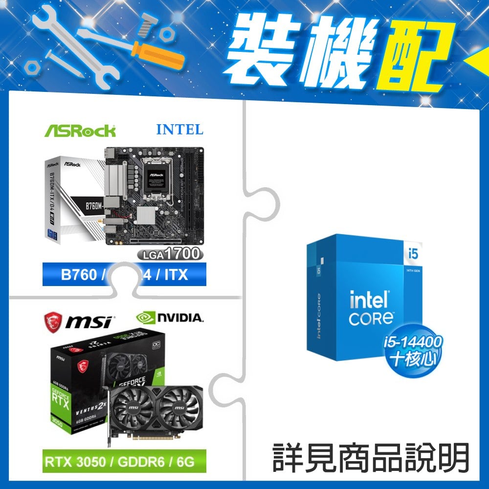 ☆裝機配★ i5-14400F+華擎 B760M-ITX/D4 WiFi ITX主機板+微星 RTX 3050 VENTUS 2X 6G OC 顯示卡