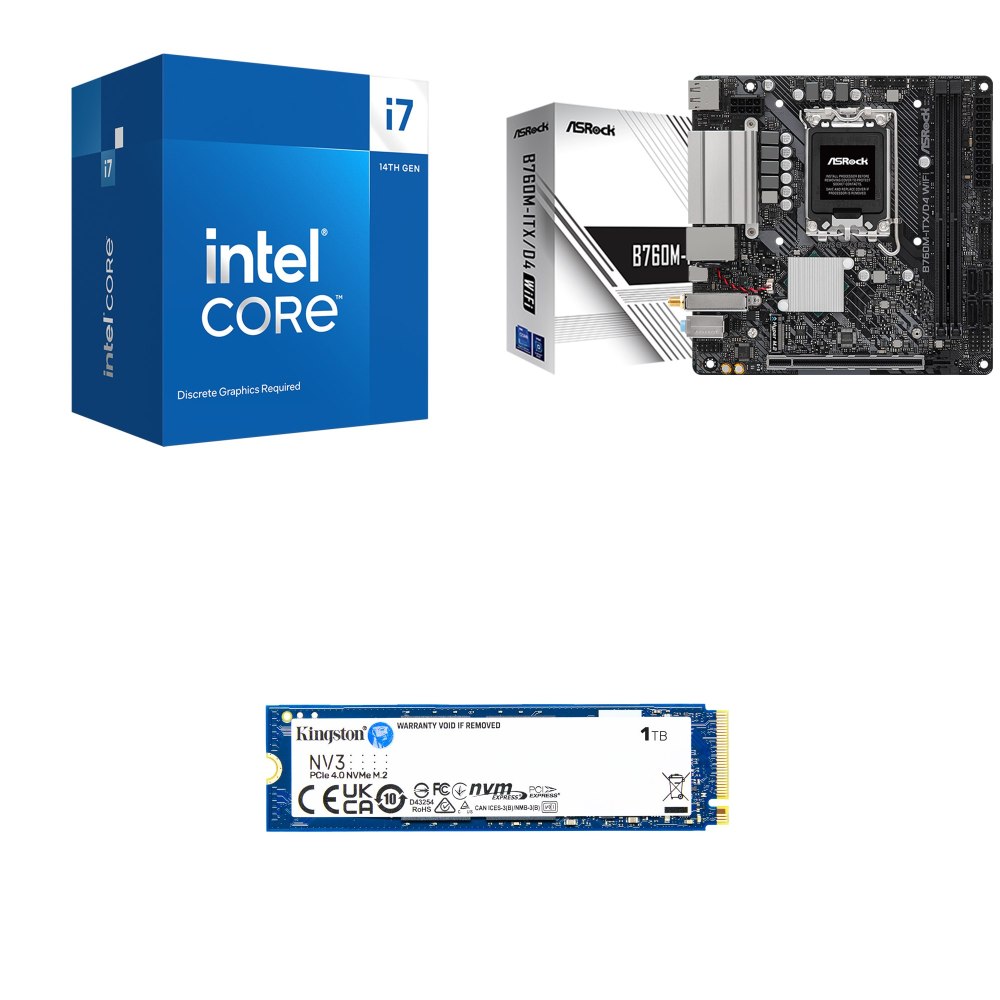 ☆裝機配★ i7-14700+華擎 B760M-ITX/D4 WiFi ITX主機板+金士頓 NV3 1TB M.2 PCIe SSD