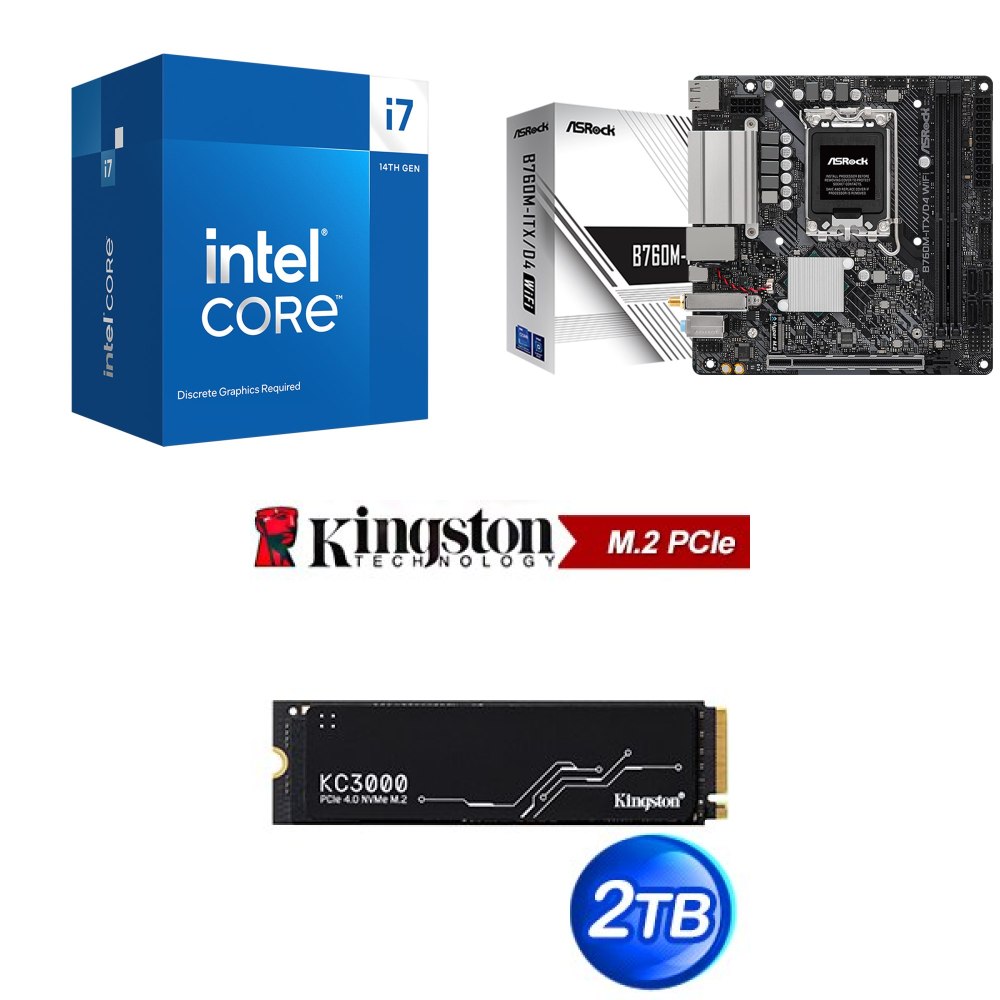 ☆裝機配★ i7-14700F+華擎 B760M-ITX/D4 WiFi ITX主機板+金士頓 KC3000 2TB PCIe 4.0 NVMe M.2 SSD