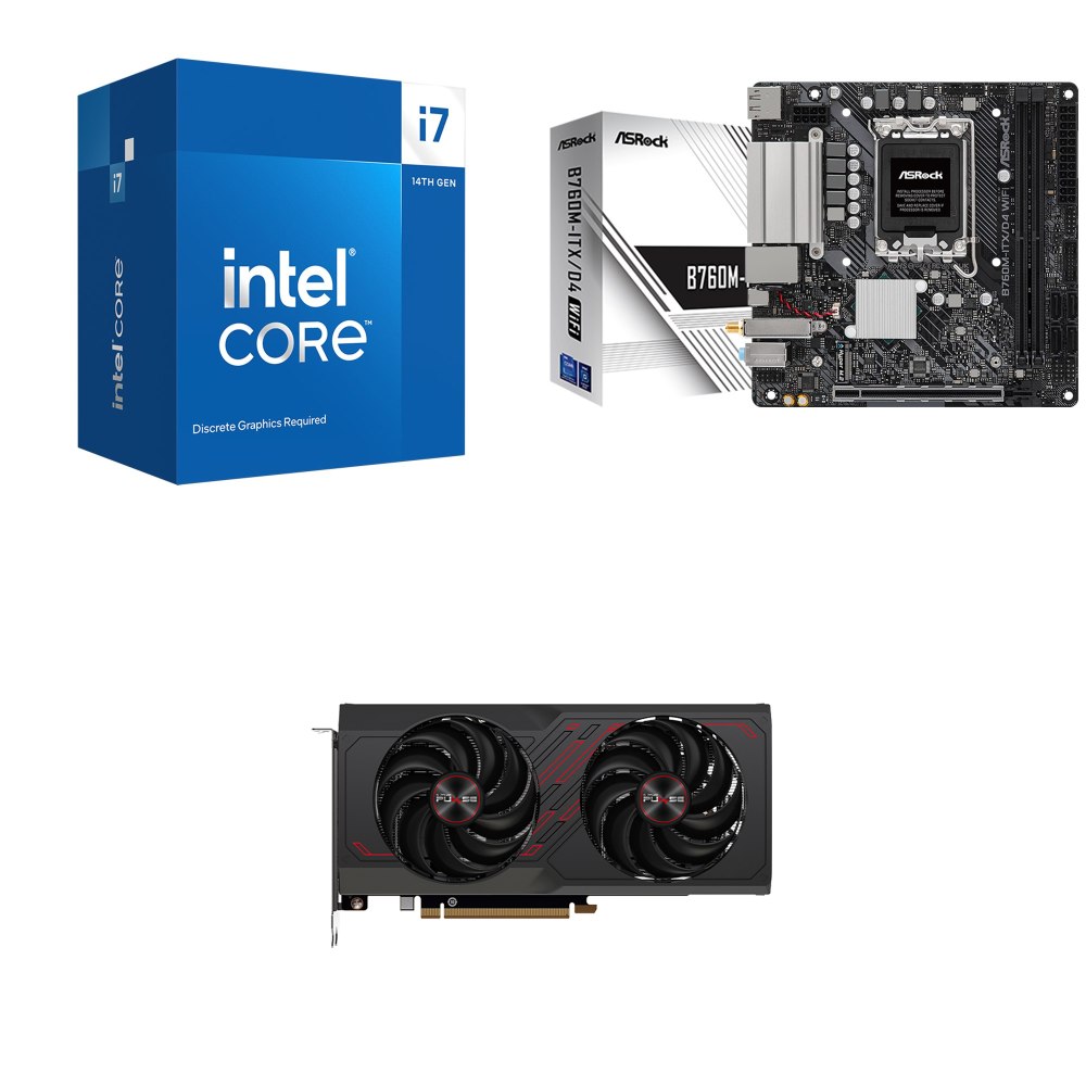 ☆裝機配★ i7-14700F+華擎 B760M-ITX/D4 WiFi ITX主機板+藍寶石 PULSE 白金版 RX 7650 GRE GAMING 8GB 顯示卡