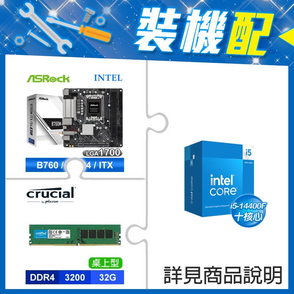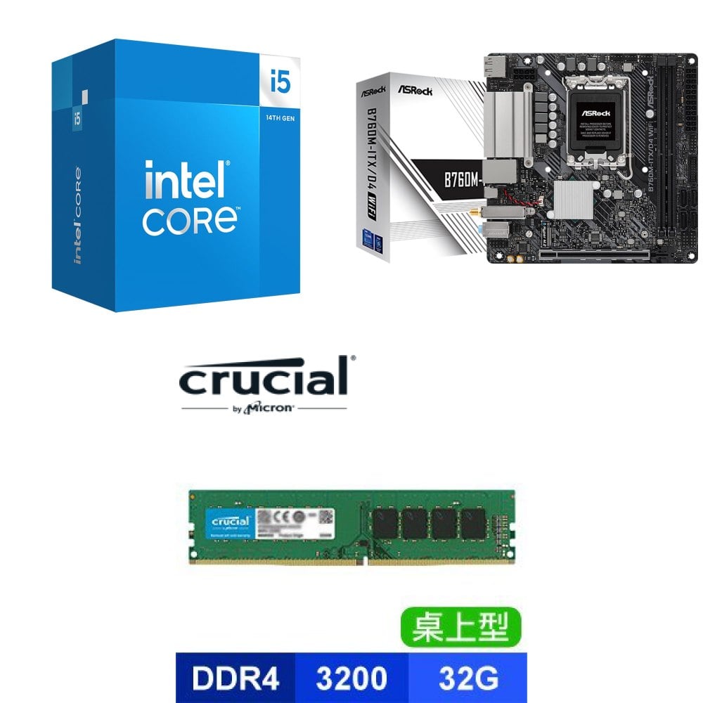 ☆裝機配★ i5-14400F+華擎 B760M-ITX/D4 WiFi ITX主機板+美光 DDR4-3200 32G 記憶體