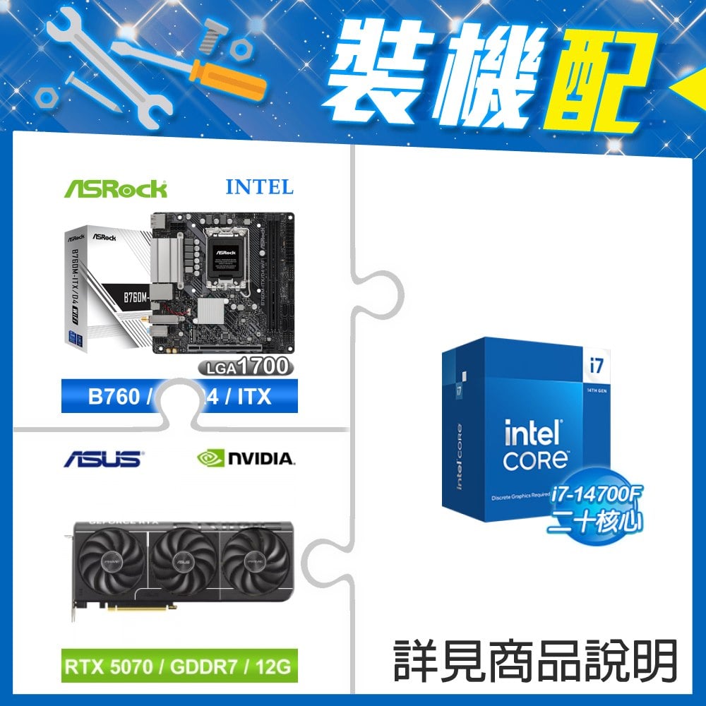 ☆裝機配★ i7-14700F+華擎 B760M-ITX/D4 WiFi ITX主機板+華碩 PRIME-RTX5070-O12G 顯示卡