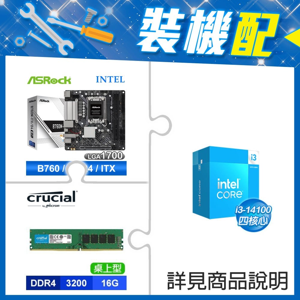 ☆裝機配★ i3-14100+華擎 B760M-ITX/D4 WiFi ITX主機板+美光 DDR4-3200 16G 記憶體