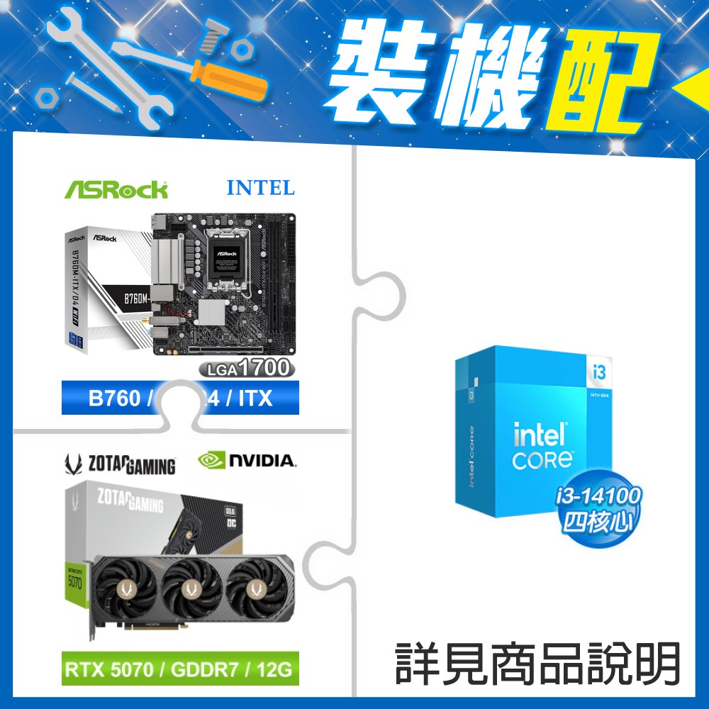 ☆裝機配★ i3-14100+華擎 B760M-ITX/D4 WiFi ITX主機板+索泰 RTX 5070 SOLID OC 12G 顯示卡