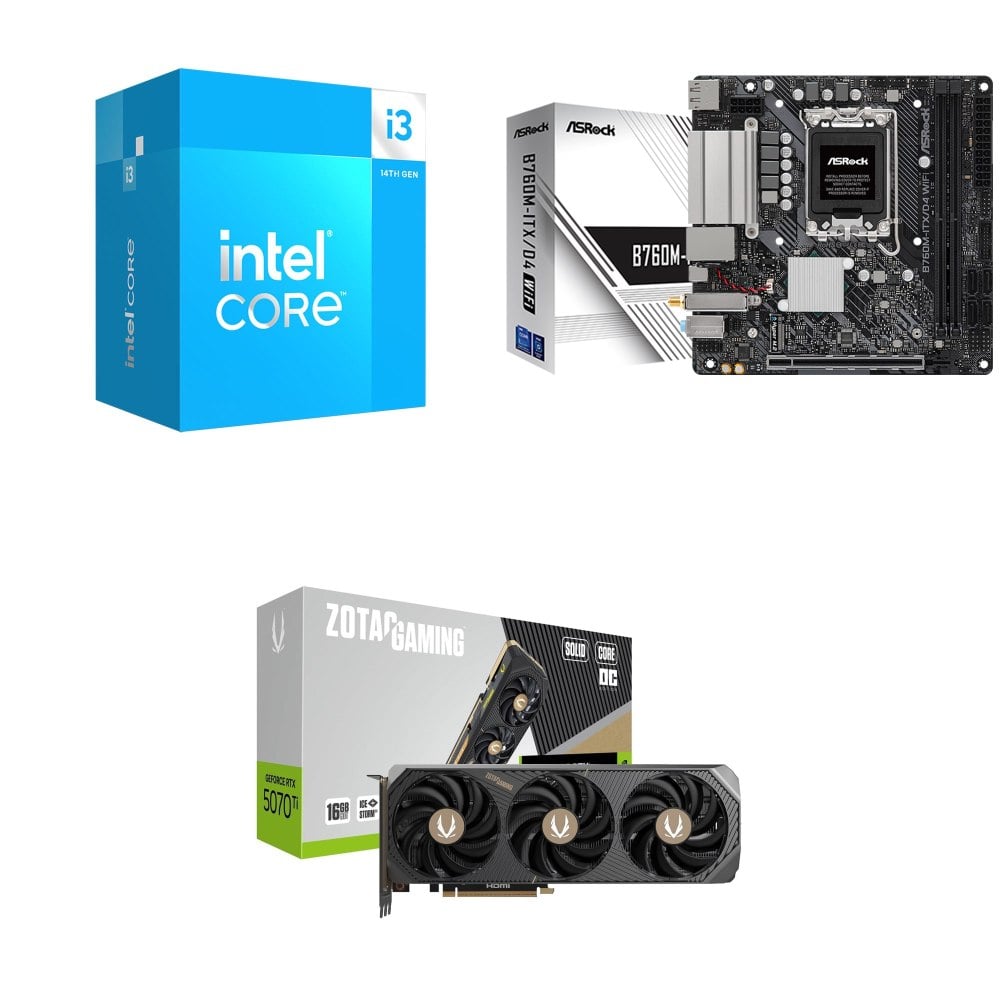 ☆裝機配★ i3-14100F+華擎 B760M-ITX/D4 WiFi ITX主機板+索泰 RTX 5070 TI SOLID CORE OC 16G 顯示卡
