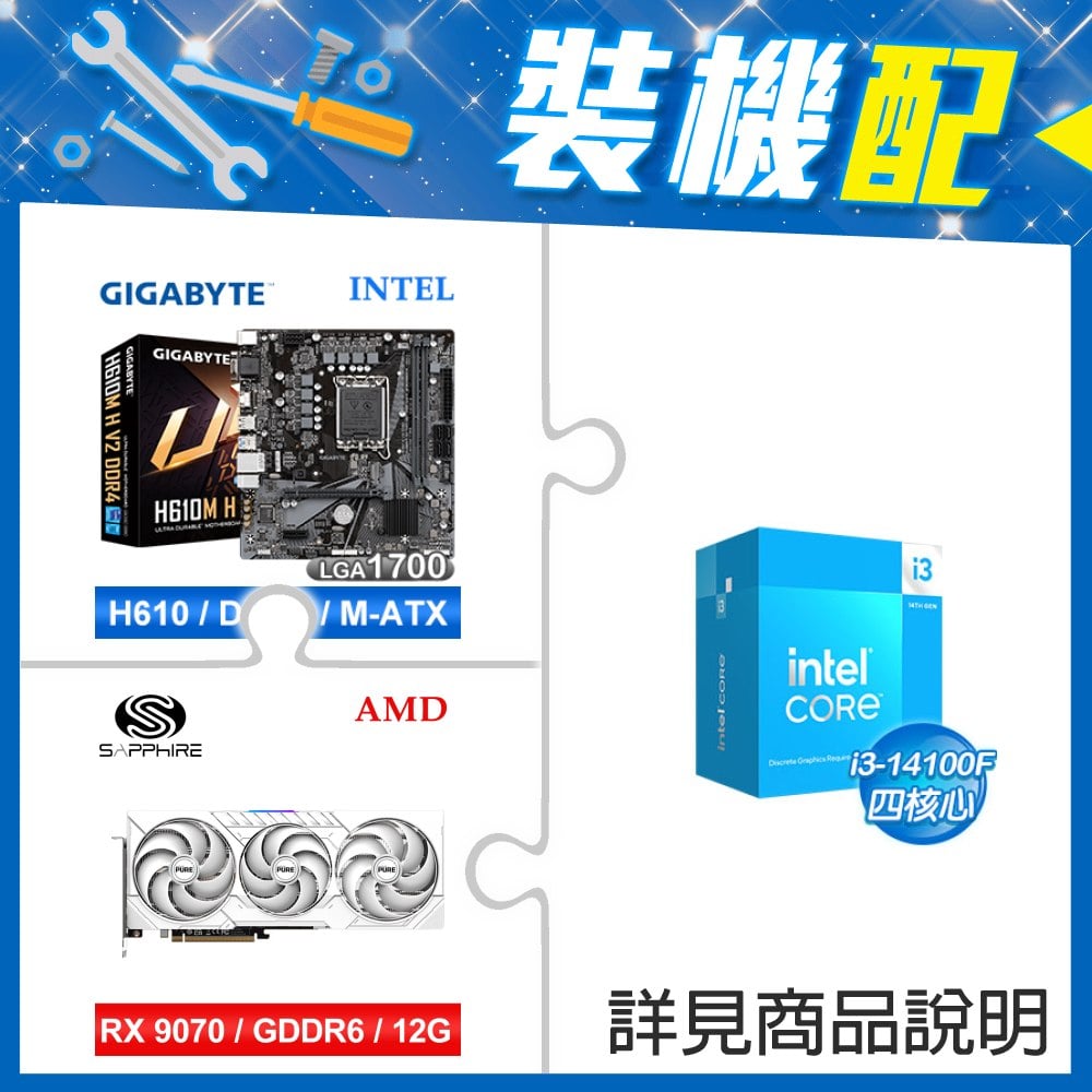 ☆裝機配★ i3-14100F+技嘉 H610M H V2 D4 MATX主機板+藍寶石 PURE 極地 RX 9070 GRE GAMING OC 12GB 顯示卡