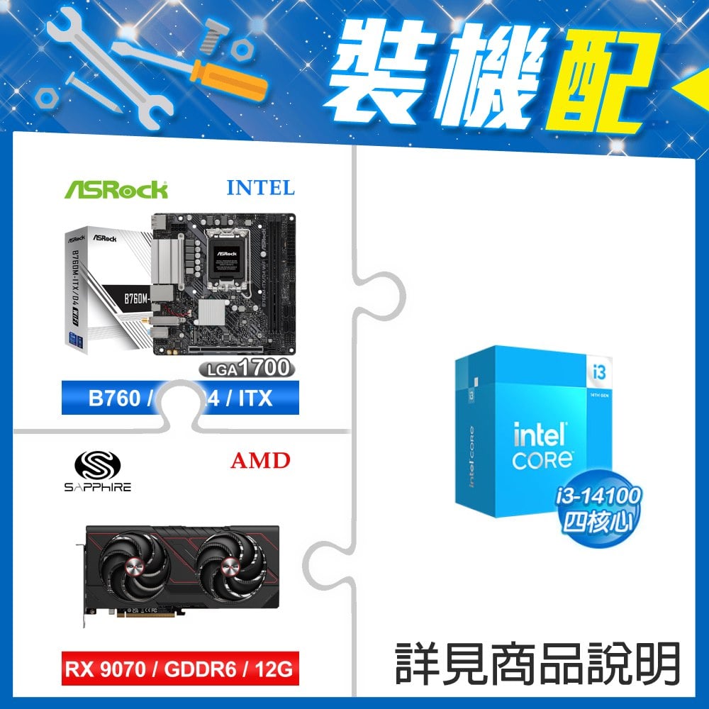 ☆裝機配★ i3-14100F+華擎 B760M-ITX/D4 WiFi ITX主機板+藍寶石 PULSE 脈動 RX 9070 GRE GAMING 12GB 顯示卡
