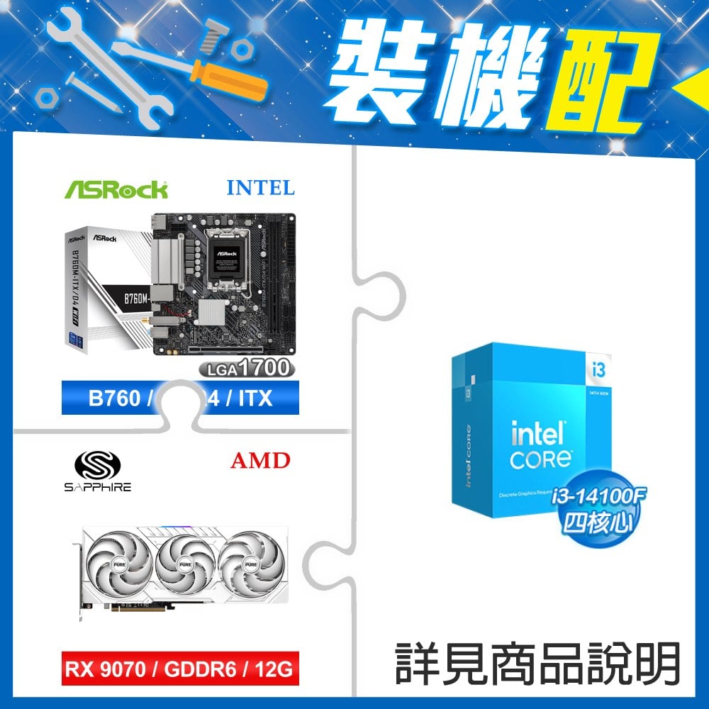 ☆裝機配★ i3-14100F+華擎 B760M-ITX/D4 WiFi ITX主機板+藍寶石 PURE 極地 RX 9070 GRE GAMING OC 12GB 顯示卡