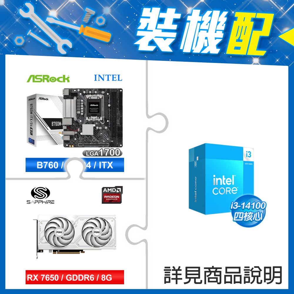 ☆裝機配★ i3-14100+華擎 B760M-ITX/D4 WiFi ITX主機板+藍寶石 PURE 極地 RX 7650 GRE GAMING 8GB 顯示卡