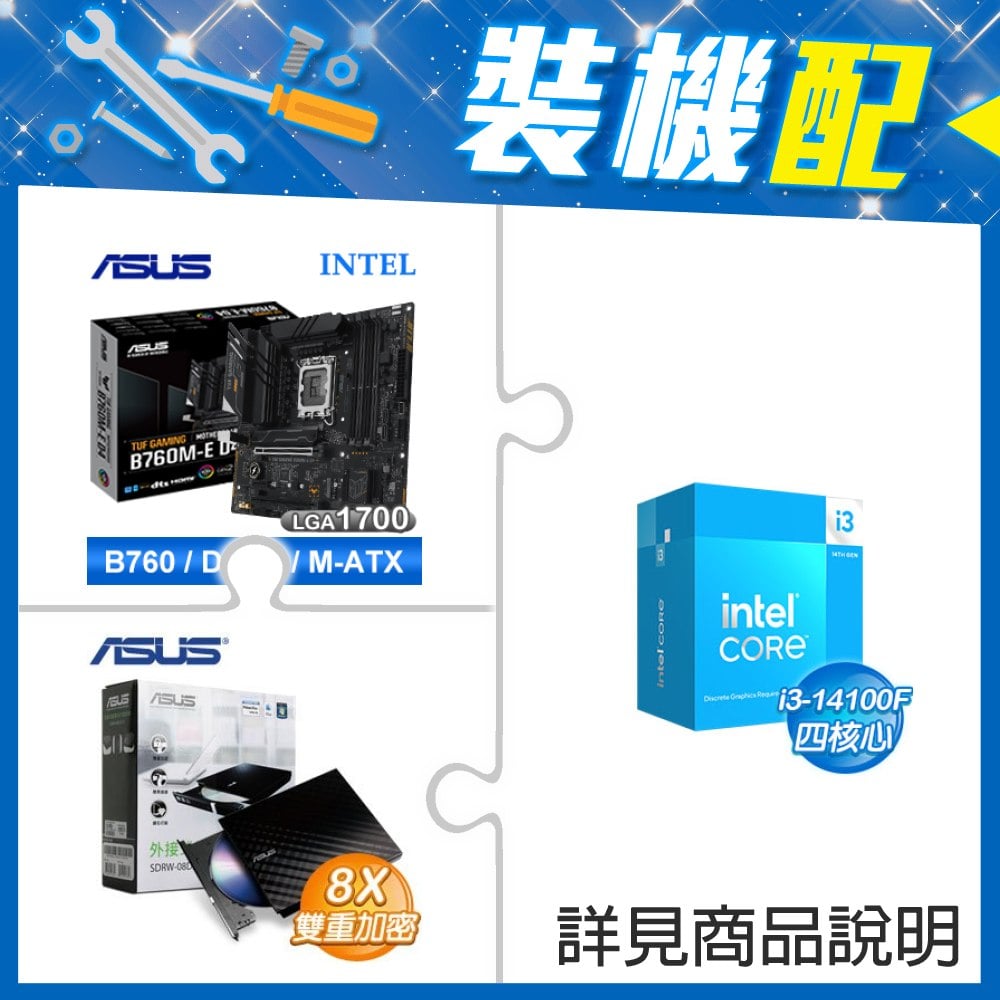 ☆裝機配★ i3-14100F+華碩 TUF GAMING B760M-E D4 M-ATX主機板+華碩 SDRW-08D2S-U 外接式燒錄機《黑》