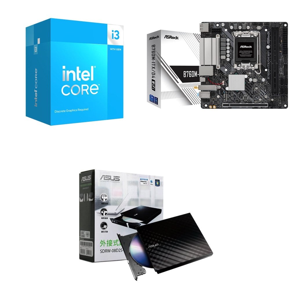 ☆裝機配★ i3-14100F+華擎 B760M-ITX/D4 WiFi ITX主機板+華碩 SDRW-08D2S-U 外接式燒錄機《黑》