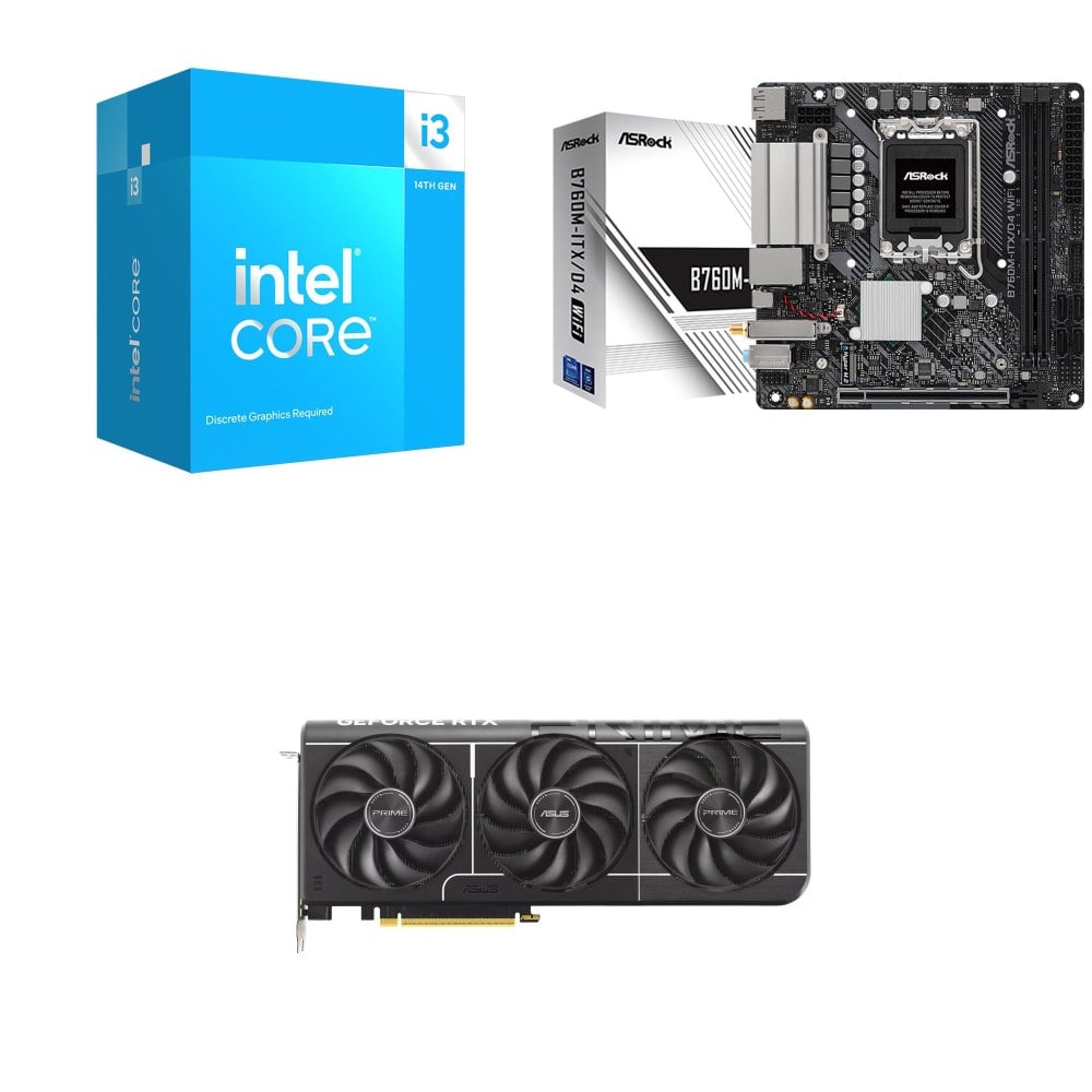 ☆裝機配★ i3-14100F+華擎 B760M-ITX/D4 WiFi ITX主機板+華碩 PRIME-RTX5070-O12G 顯示卡