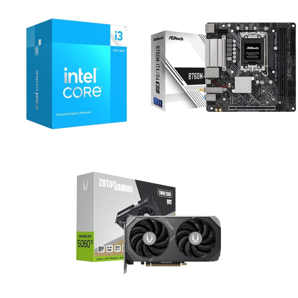 ☆裝機配★ i3-14100F+華擎 B760M-ITX/D4 WiFi ITX主機板+索泰 RTX 5060 TI 8GB Twin Edge OC 顯示卡