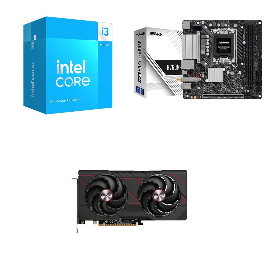 ☆裝機配★ i3-14100F+華擎 B760M-ITX/D4 WiFi ITX主機板+藍寶石 PURE 極地 RX 7650 GRE GAMING 8GB 顯示卡