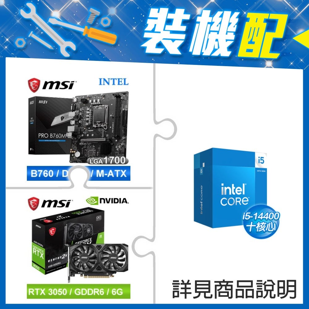 ☆裝機配★ i5-14400+微星 PRO B760M-E D5 MATX主機板+微星 RTX 3050 VENTUS 2X 6G OC 顯示卡