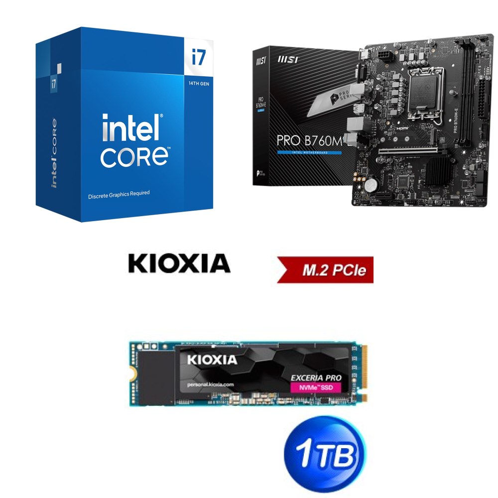☆裝機配★ i7-14700F+微星 PRO B760M-E D5 MATX主機板+鎧俠 EXCERIA PRO 1TB PCIe Gen4x4 SSD