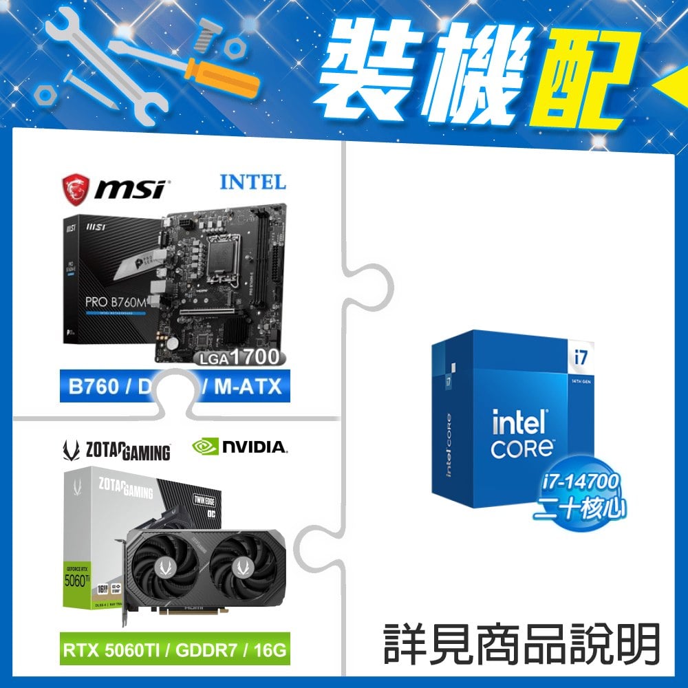 ☆裝機配★ i7-14700+微星 PRO B760M-E D5 MATX主機板+索泰 RTX 5060 TI 16GB Twin Edge OC 顯示卡