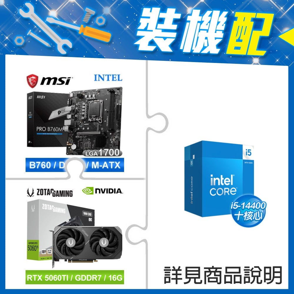 ☆裝機配★ i5-14400+微星 PRO B760M-E D5 MATX主機板+索泰 RTX 5060 TI 16GB Twin Edge OC 顯示卡