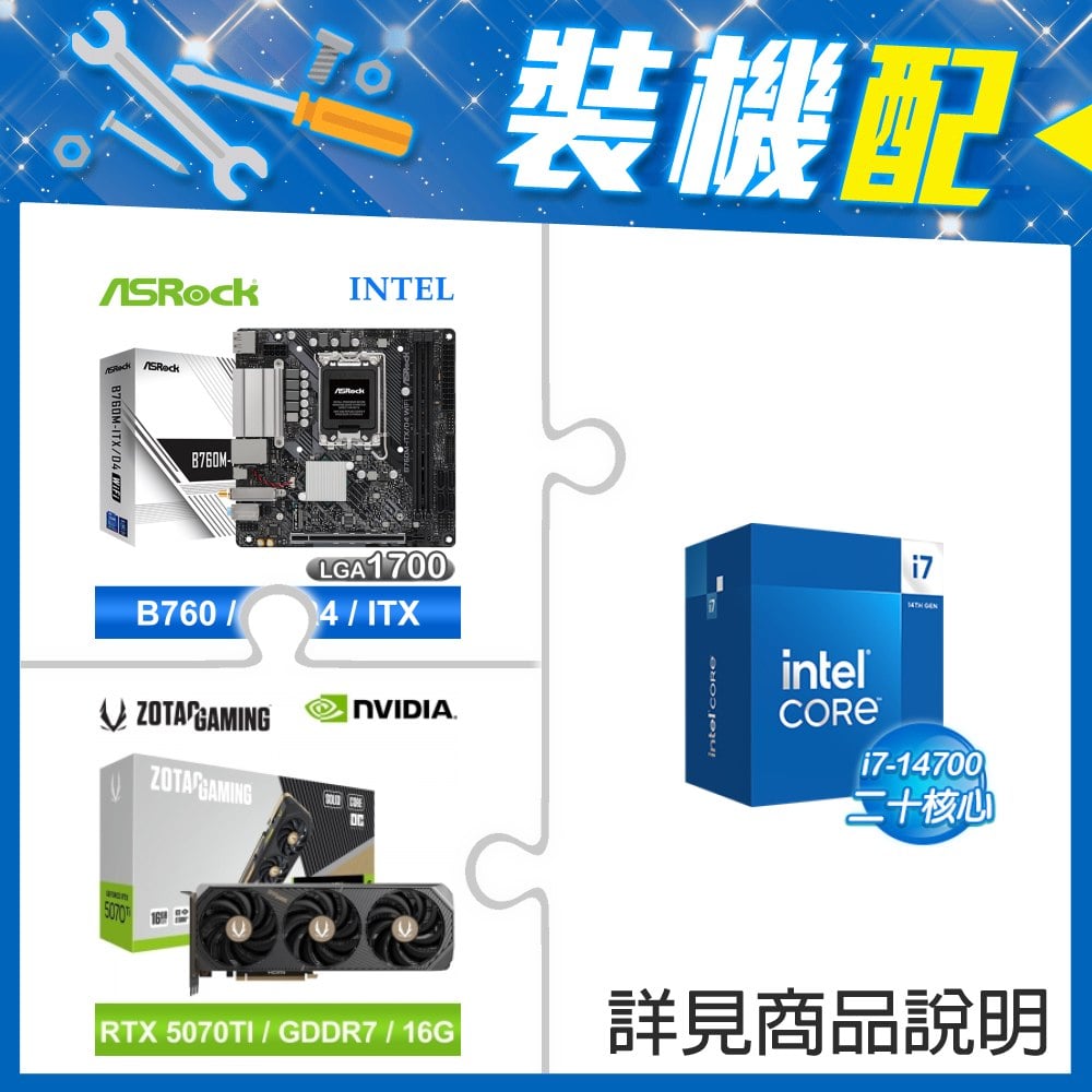 ☆裝機配★ i7-14700+華擎 B760M-ITX/D4 WiFi ITX主機板+索泰 RTX 5070 TI SOLID CORE OC 16G 顯示卡