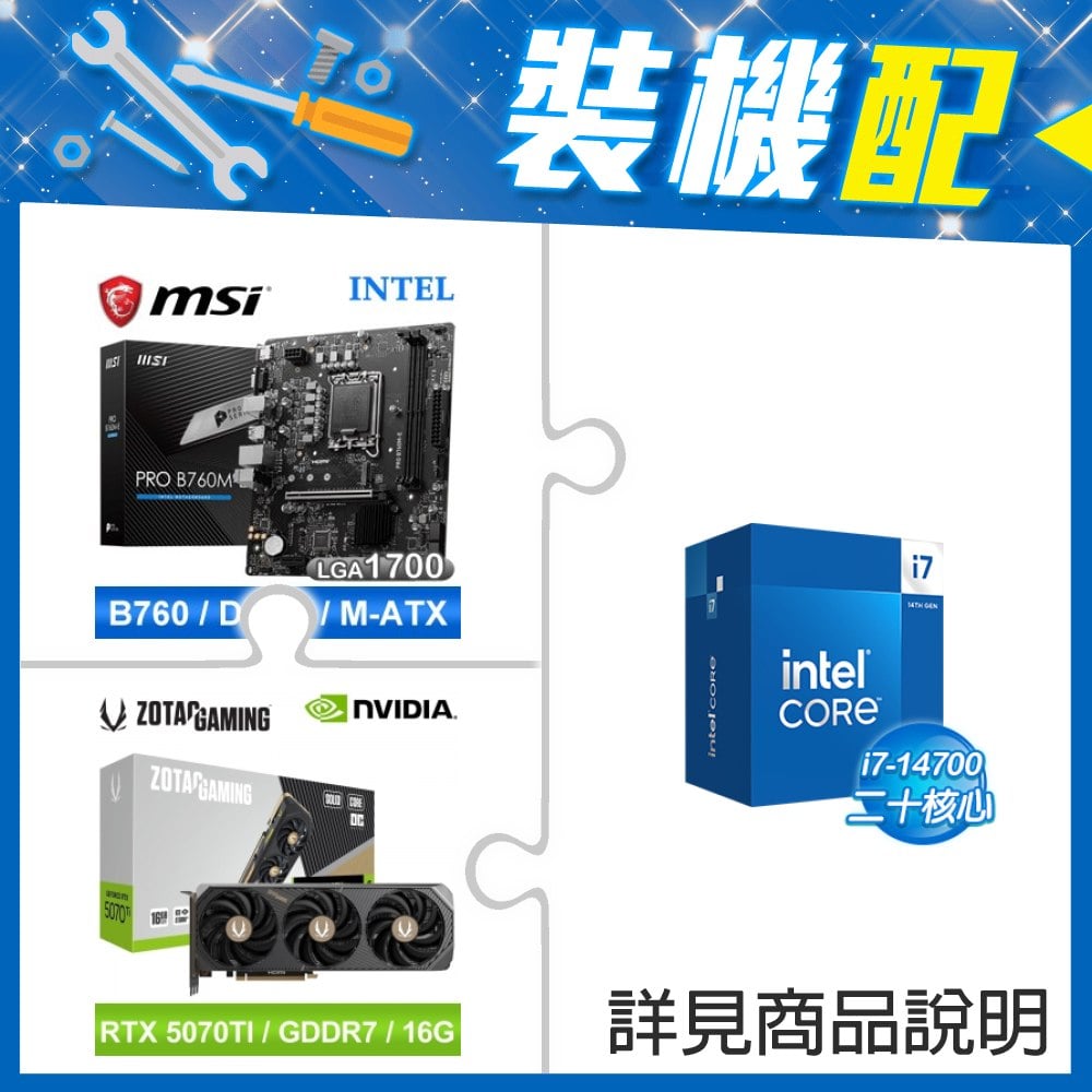 ☆裝機配★ i7-14700+微星 PRO B760M-E D5 MATX主機板+索泰 RTX 5070 TI SOLID CORE OC 16G 顯示卡