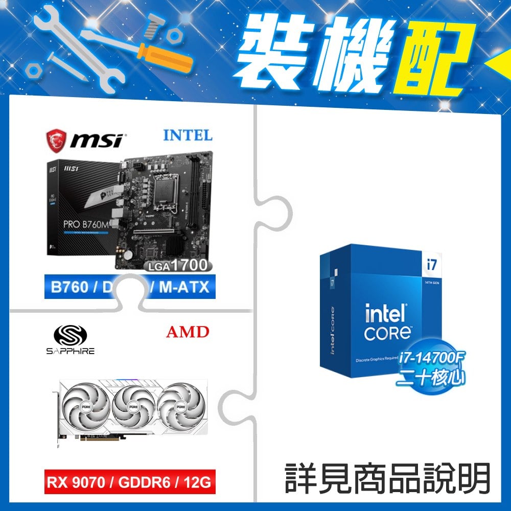 ☆裝機配★ i7-14700F+微星 PRO B760M-E D5 MATX主機板+藍寶石 PULSE 脈動 RX 9070 GRE GAMING 12GB 顯示卡