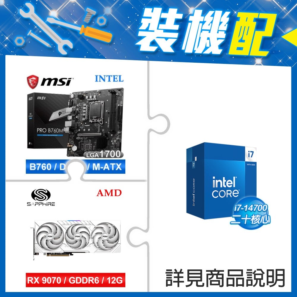 ☆裝機配★ i7-14700+微星 PRO B760M-E D5 MATX主機板+藍寶石 PURE 極地 RX 9070 XT GAMING OC 16GB 顯示卡