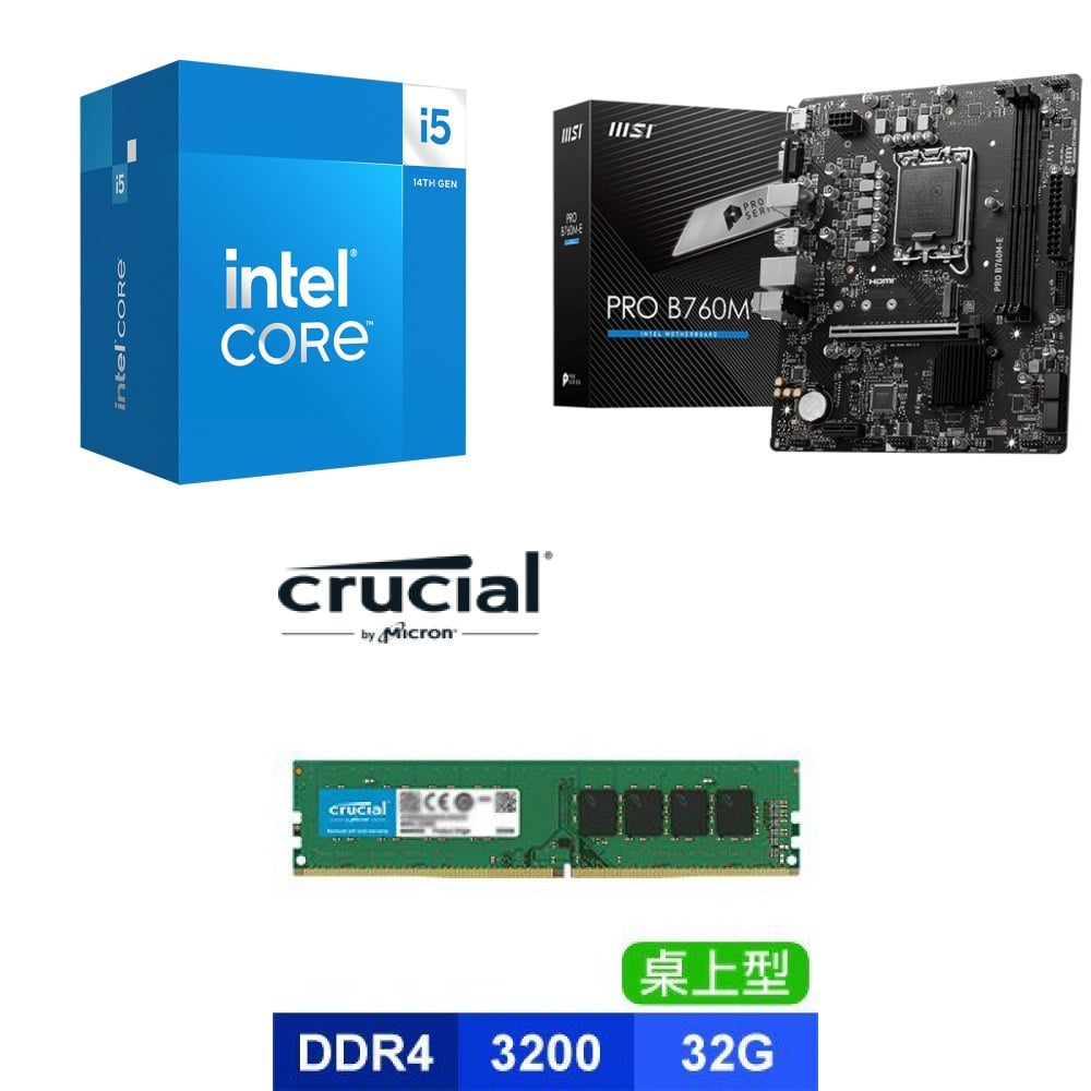 ☆裝機配★ i5-14400+微星 PRO B760M-E D5 MATX主機板+美光 DDR4-3200 32G 記憶體