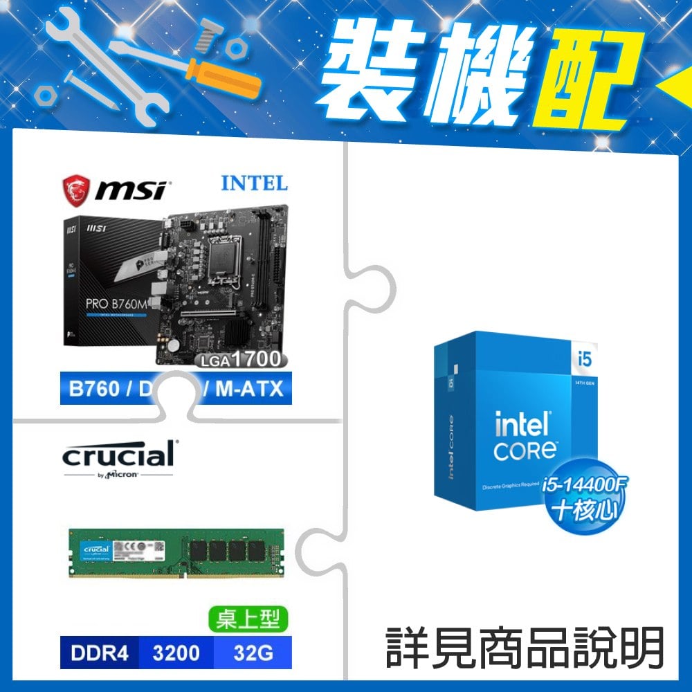 ☆裝機配★ i5-14400F+微星 PRO B760M-E D5 MATX主機板+美光 DDR4-3200 32G 記憶體