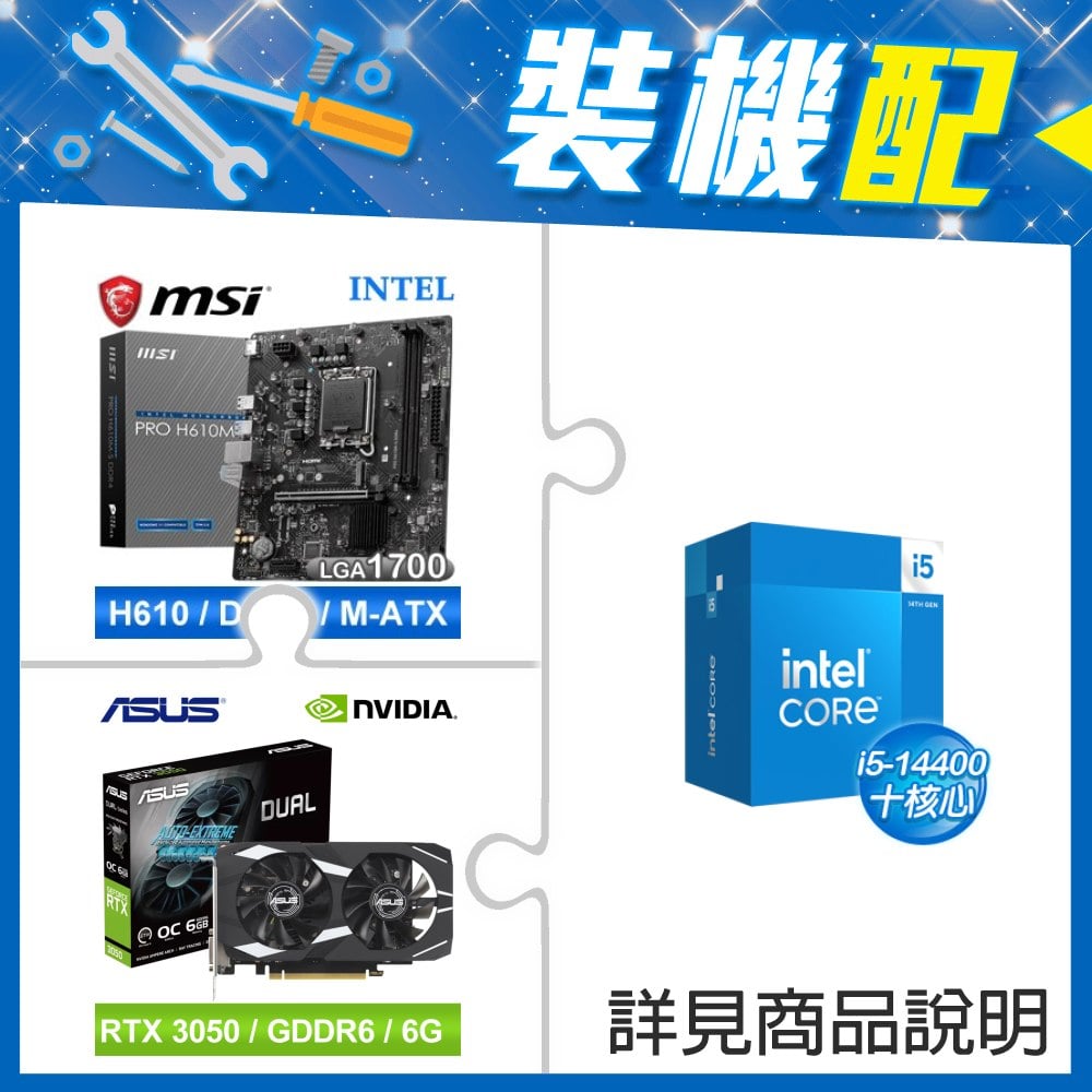 ☆裝機配★ i5-14400+微星 PRO H610M-S D4 M-ATX主機板+華碩 DUAL-RTX3050-O6G 顯示卡