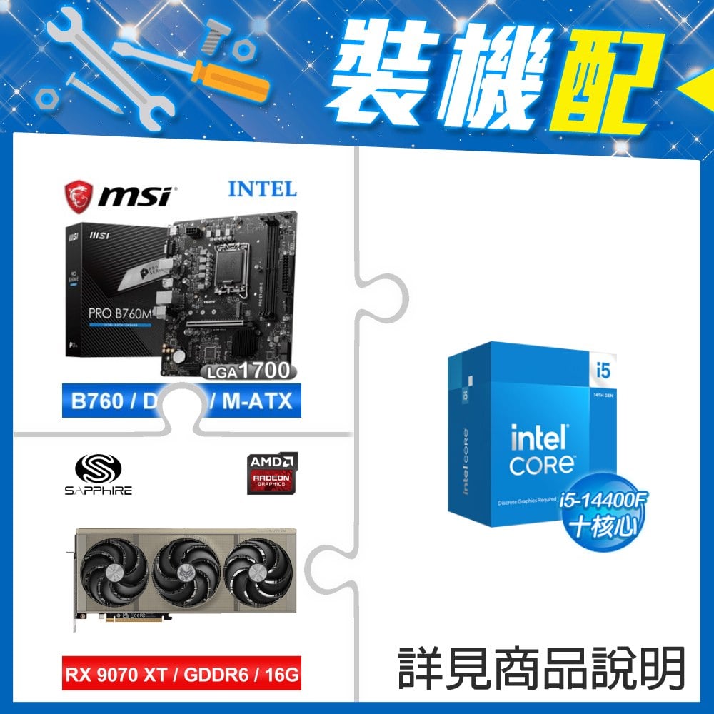 ☆裝機配★ i5-14400F+微星 PRO B760M-E D5 MATX主機板+藍寶石 NITRO+ 氮動 RX 9070 XT GAMING OC 16GB 顯示卡