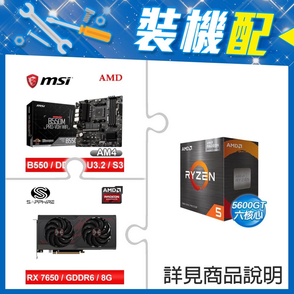 ☆裝機配★ AMD R5 5600GT+微星 B550M PRO-VDH WIFI M-ATX主機板+藍寶石 PULSE 白金版 RX 7650 GRE GAMING 8GB 顯示卡