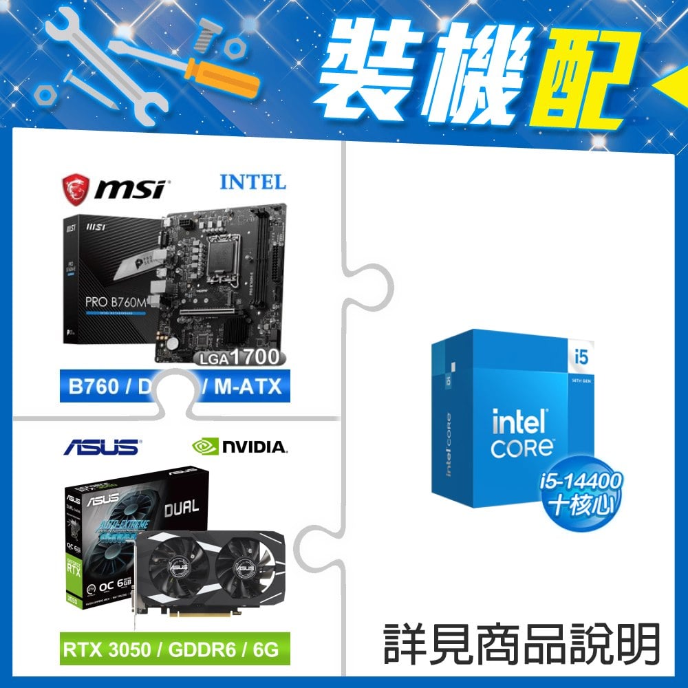 ☆裝機配★ i5-14400F+微星 PRO B760M-E D5 MATX主機板+華碩 DUAL-RTX3050-O6G 顯示卡