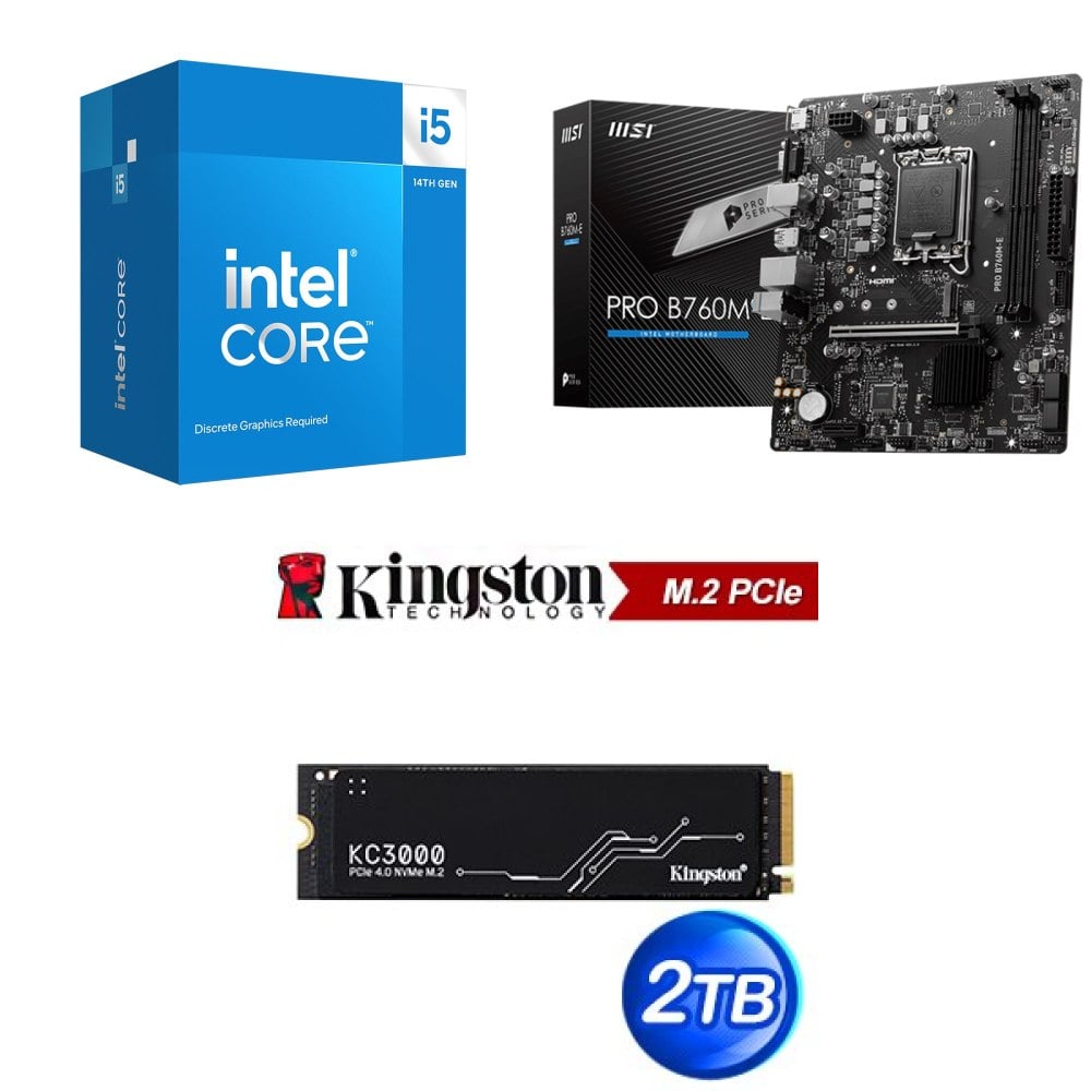 ☆裝機配★ i5-14400+微星 PRO B760M-E D5 MATX主機板+金士頓 KC3000 2TB PCIe 4.0 NVMe M.2 SSD