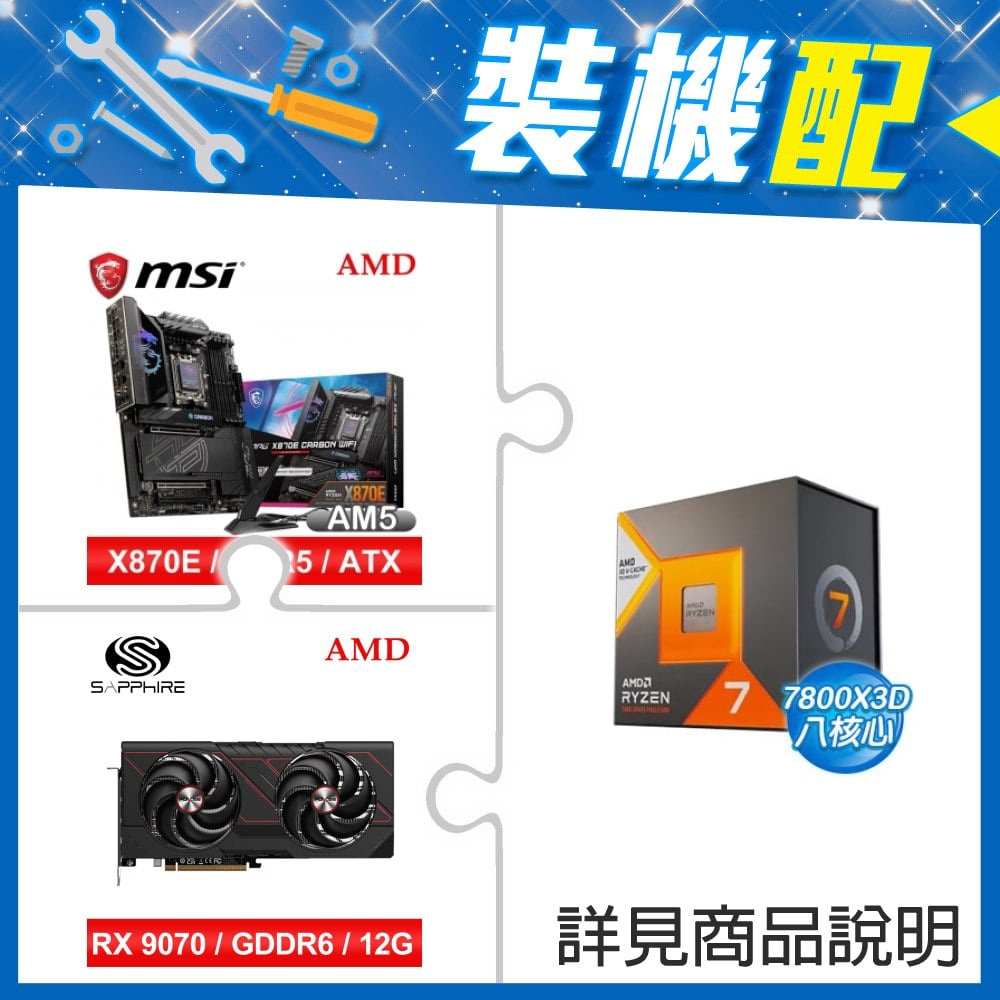 ☆裝機配★ AMD R7 7800X3D+微星 MPG X870E CARBON WIFI ATX主機板+藍寶石 PULSE 脈動 RX 9070 GRE GAMING 12GB 顯示卡