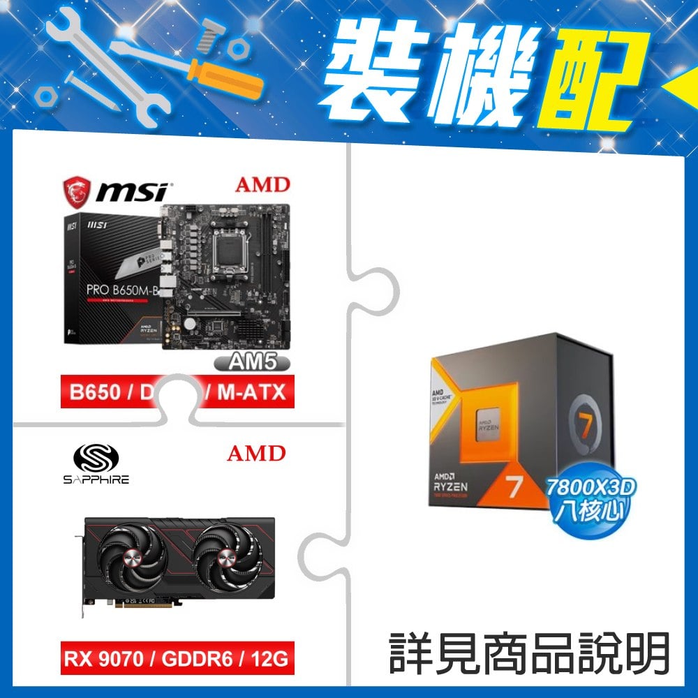 ☆裝機配★ AMD R7 7800X3D+微星 PRO B650M-B M-ATX主機板+藍寶石 PULSE 脈動 RX 9070 GRE GAMING 12GB 顯示卡