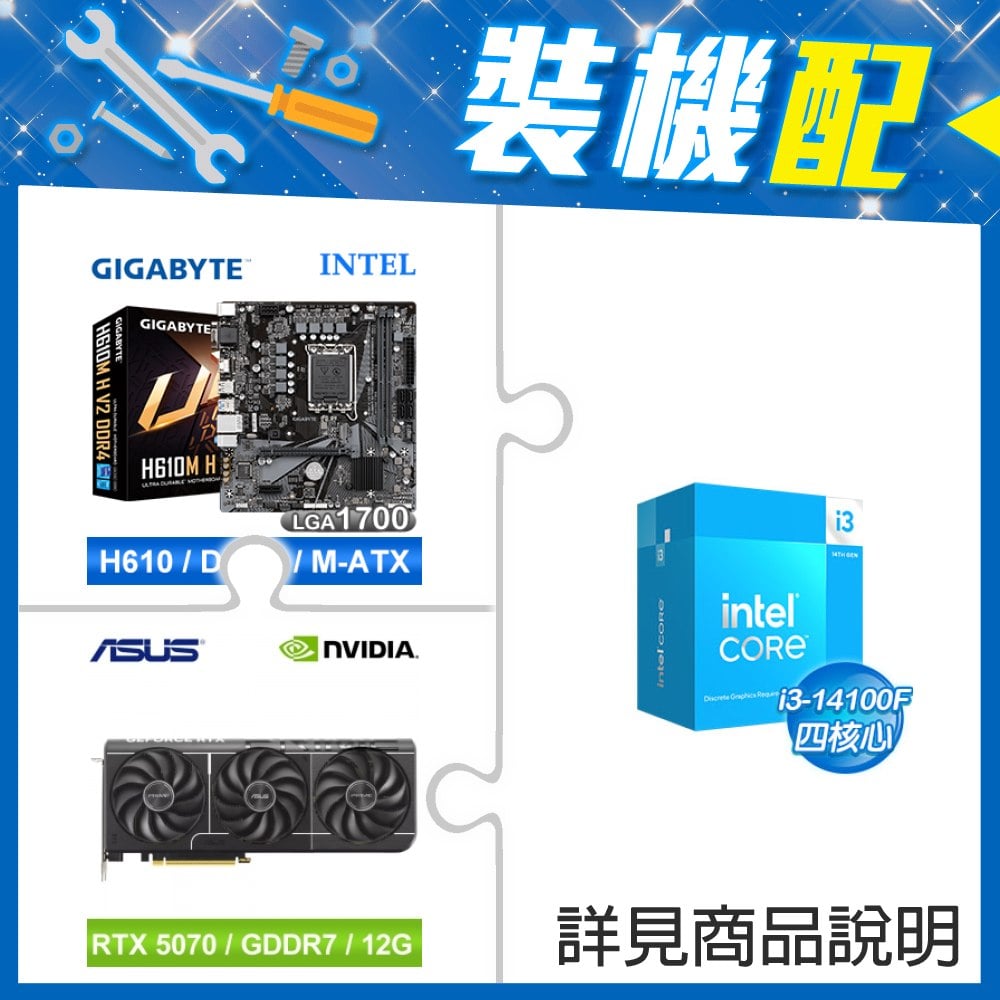 ☆裝機配★ i3-14100F+技嘉 H610M H V2 D4 MATX主機板+華碩 PRIME-RTX5070-O12G 顯示卡
