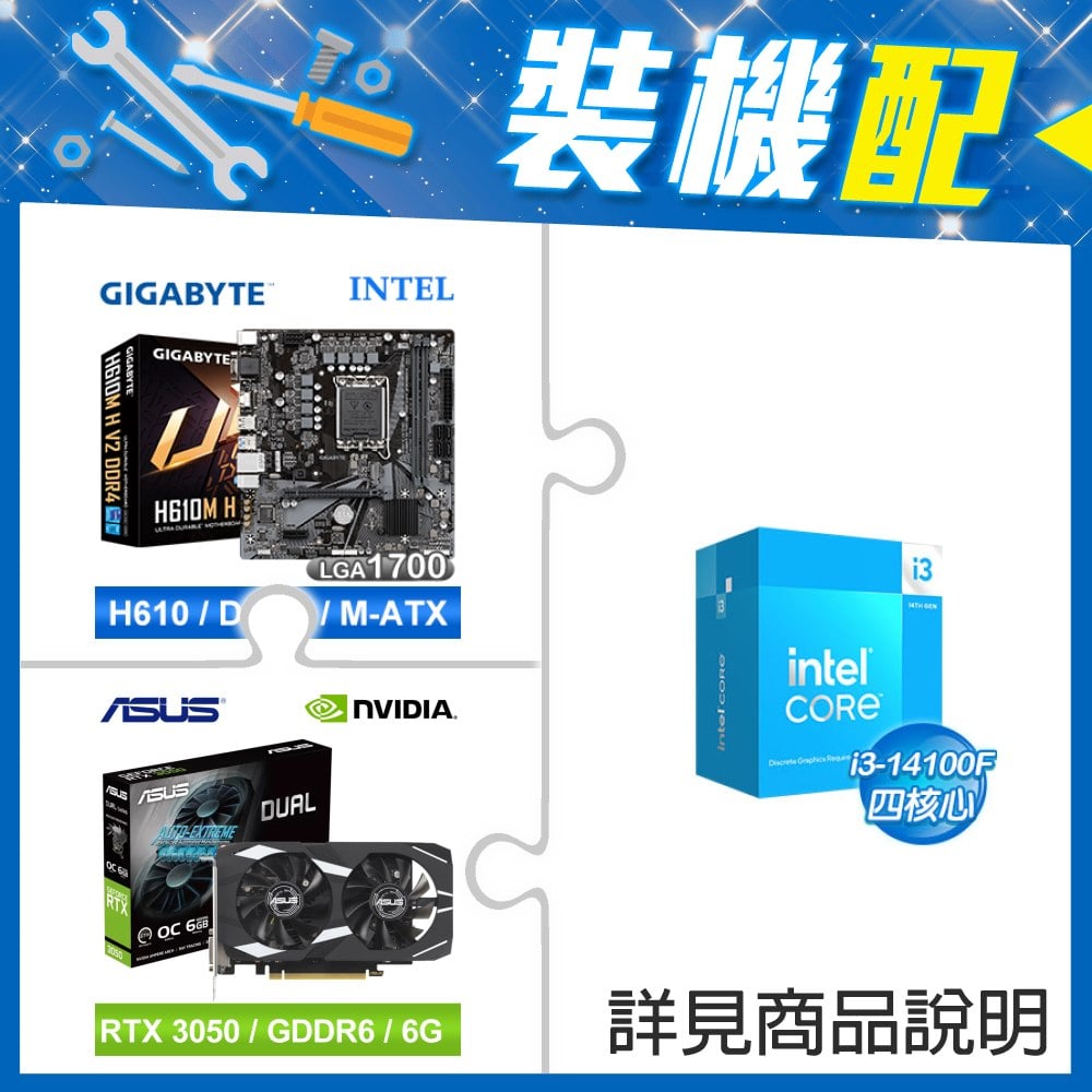☆裝機配★ i3-14100F+技嘉 H610M H V2 D4 MATX主機板+華碩 DUAL-RTX3050-O6G 顯示卡