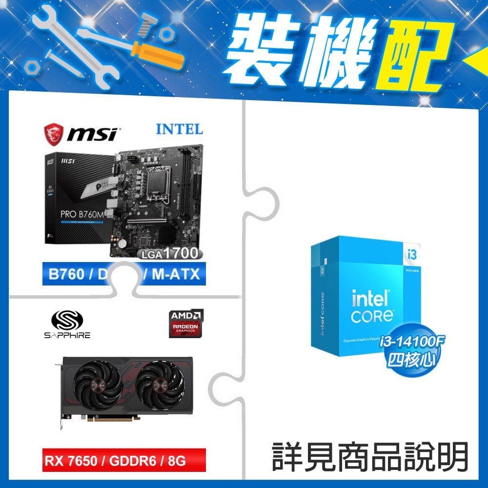 ☆裝機配★ i3-14100F+微星 PRO B760M-E D5 MATX主機板+藍寶石 PULSE 白金版 RX 7650 GRE GAMING 8GB 顯示卡