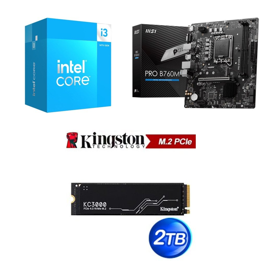 ☆裝機配★ i3-14100+微星 PRO B760M-E D5 MATX主機板+金士頓 KC3000 2TB PCIe 4.0 NVMe M.2 SSD