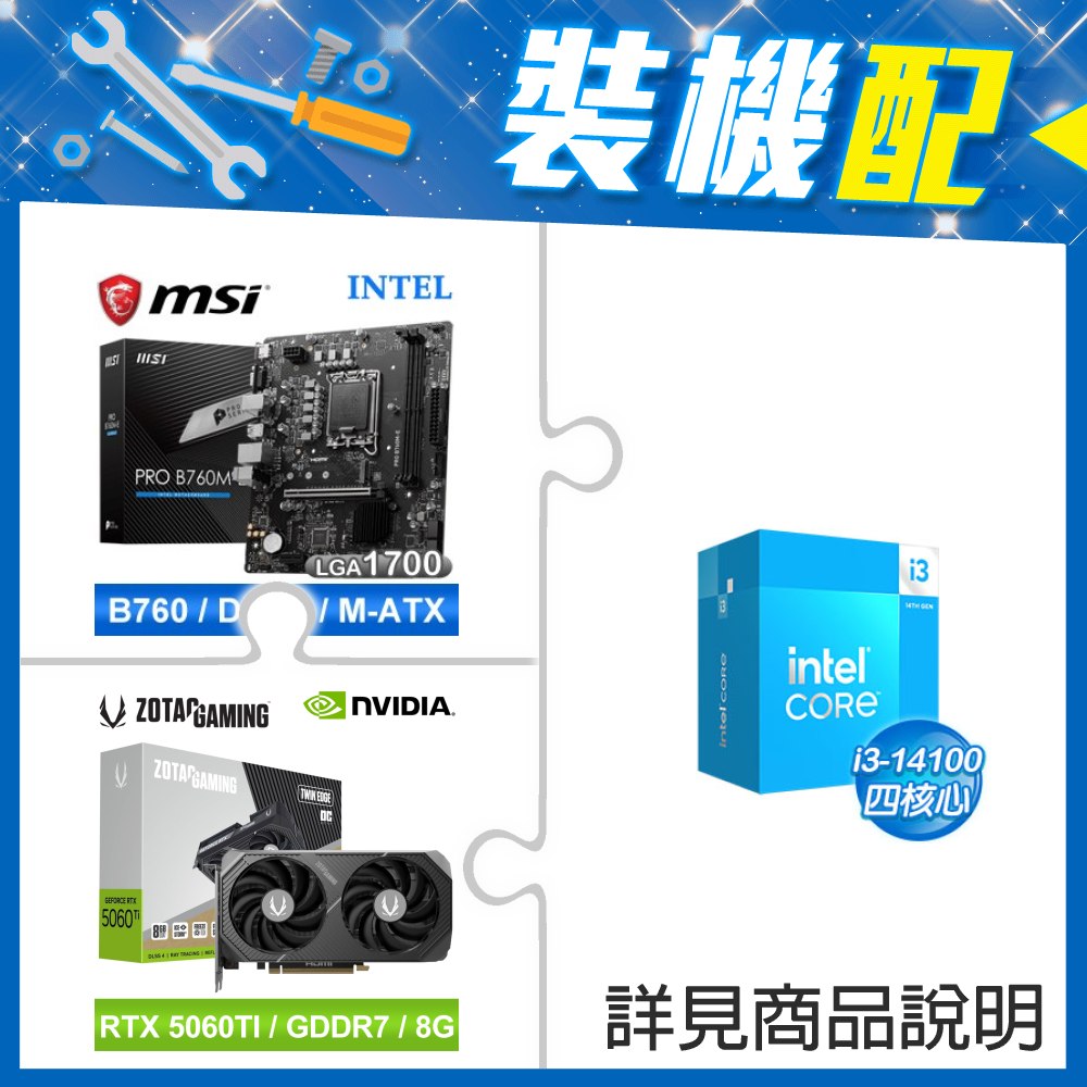 ☆裝機配★ i3-14100F+微星 PRO B760M-E D5 MATX主機板+索泰 RTX 5060 TI 8GB Twin Edge OC 顯示卡