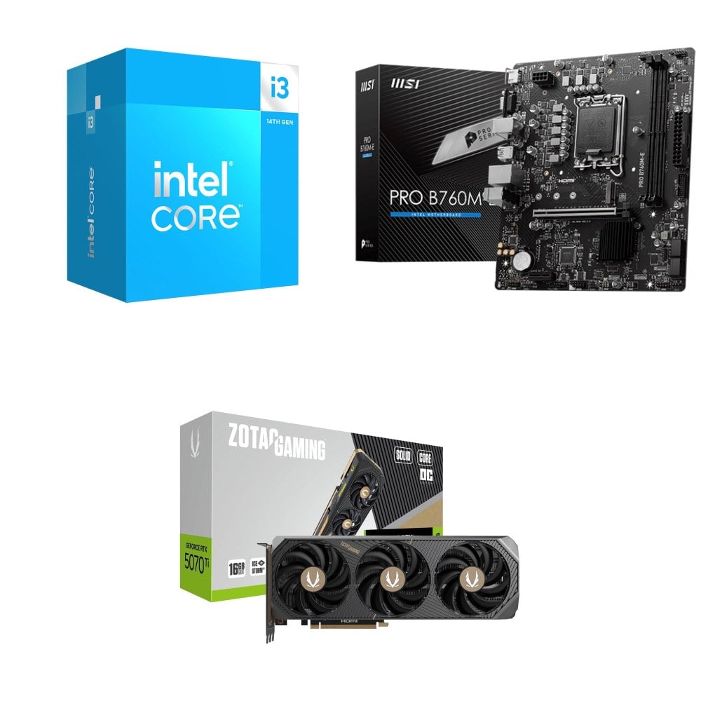 ☆裝機配★ i3-14100F+微星 PRO B760M-E D5 MATX主機板+索泰 RTX 5070 TI SOLID CORE OC 16G 顯示卡
