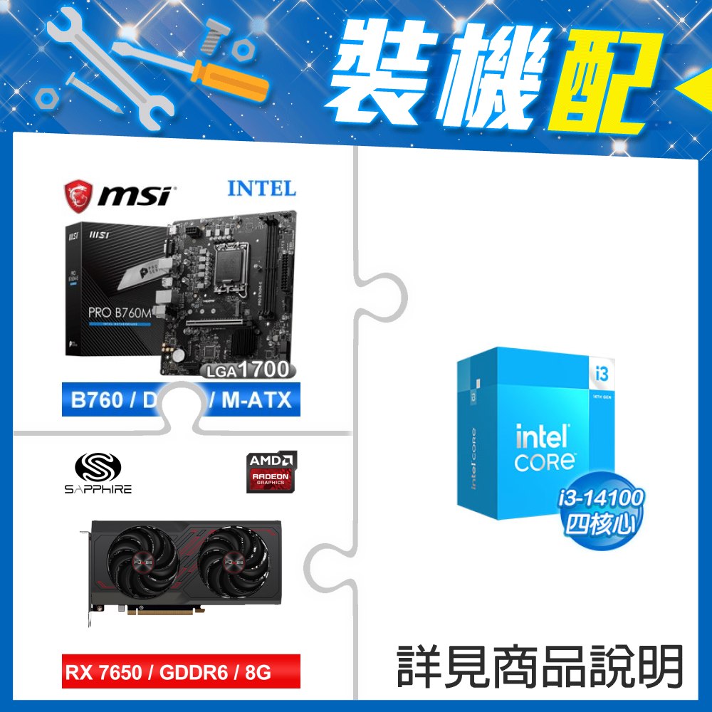 ☆裝機配★ i3-14100F+微星 PRO B760M-E D5 MATX主機板+藍寶石 PULSE 白金版 RX 7650 GRE GAMING 8GB 顯示卡