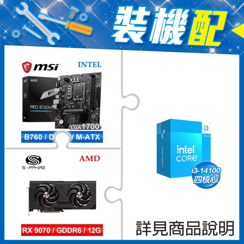 ☆裝機配★ i3-14100+微星 PRO B760M-E D5 MATX主機板+藍寶石 PULSE 脈動 RX 9070 GRE GAMING 12GB 顯示卡