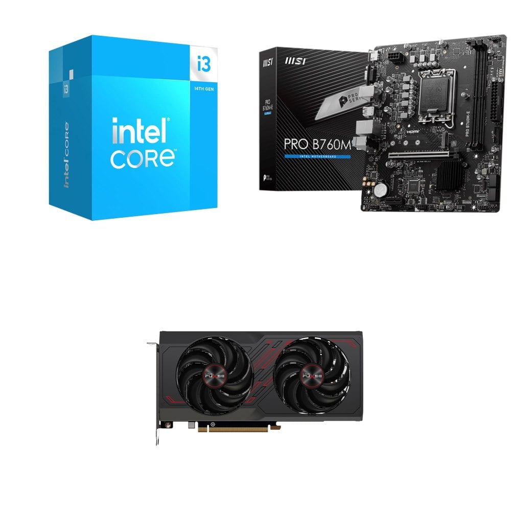 ☆裝機配★ i3-14100+微星 PRO B760M-E D5 MATX主機板+藍寶石 PULSE 白金版 RX 7650 GRE GAMING 8GB 顯示卡